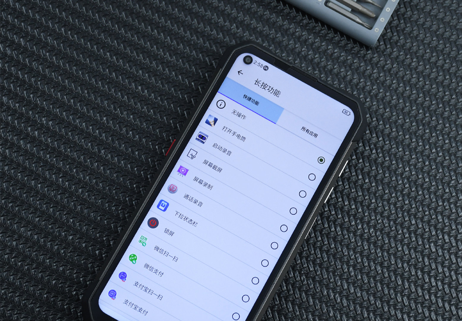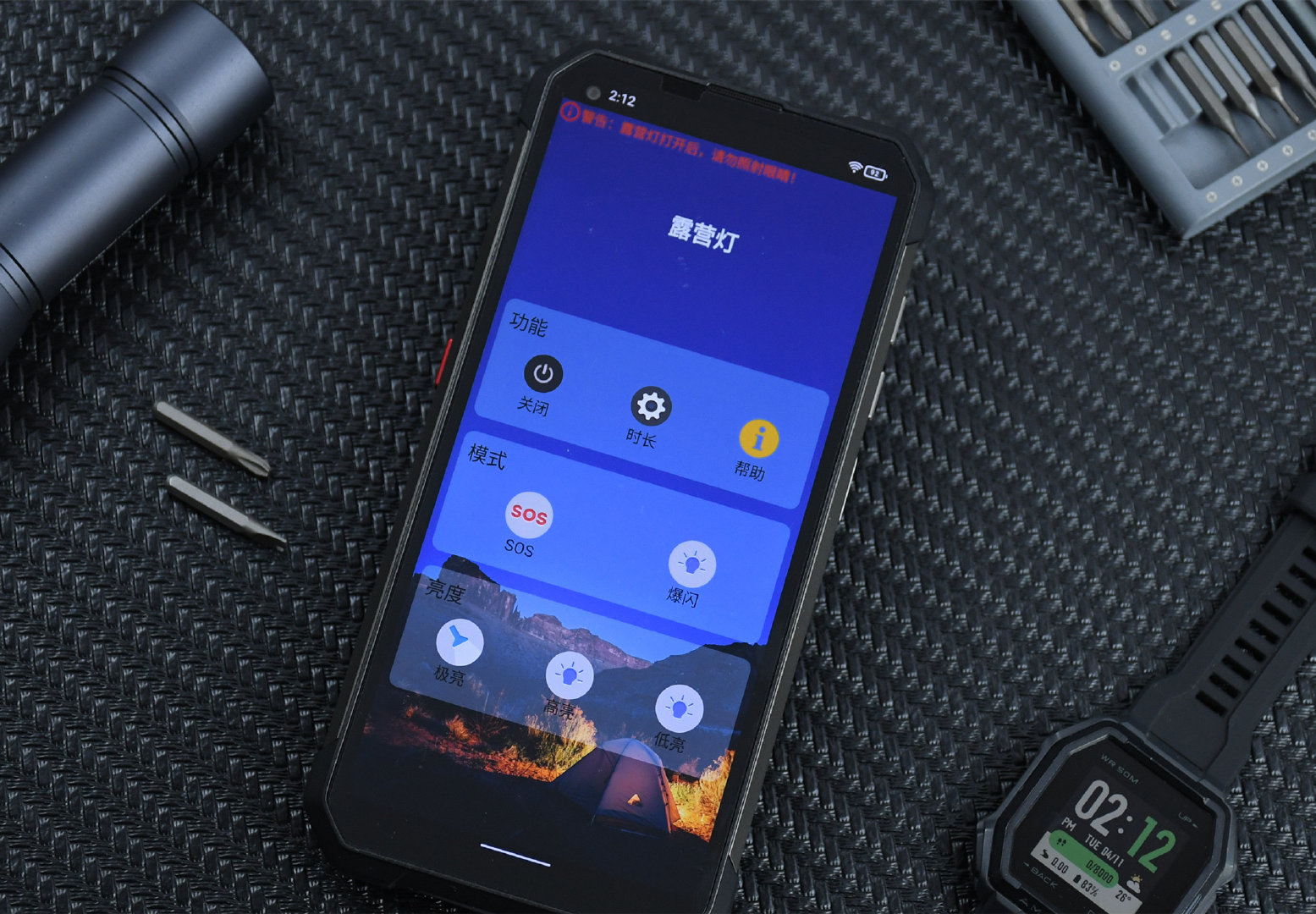 內(nèi)置22000mAh大容量電池,設(shè)有1200流明露營燈,具備IP68級三防特性,單從這三個設(shè)計信息大家會想到這是什么產(chǎn)品?我首先想到的是“帶照明、三防設(shè)計的大容量移動電源”,但答案其實是一臺三防手機。 而這臺三防手機就是由國產(chǎn)品牌Unihertz新推出的三防智能手機:Unihertz Tank,整機設(shè)計我感覺挺硬核的。那么我也不賣“關(guān)子”了,本篇評測文章要給大家?guī)淼木褪荱nihertz Tank這臺三防手機的相關(guān)內(nèi)容,若有三防手機入手需求的小伙伴,這篇文章就可以看一看。 是露營燈,也是高亮手電筒,也是大容量移動電源 我想先從“22000mAh大容量電池、1200流明露營燈”這兩處設(shè)計開始說,而這兩個也是Unihertz Tank的整機賣點。將Unihertz Tank翻轉(zhuǎn)過來,在手機背面就可以看到設(shè)有的“1200流明露營燈”了,很顯眼,通過系統(tǒng)內(nèi)的露營燈功能或者自定義快捷鍵,可以實現(xiàn)多個照明模式。 上圖所拍界面就是系統(tǒng)內(nèi)置的露營燈功能,可進行打開/關(guān)閉、切換照明模式/照明亮度這些操作。 官方稱Unihertz Tank的露營燈照明亮度達到了1200流明,這個流明亮度其實是指極亮照明模式,也就是露營燈最亮的照明模式,而第二的高亮只有1/2流明,也就是600流明;最低的低亮則只有1/4,也就是300流明。但按照我個人實際體驗來講,低亮的照明效果就很不錯了,眼睛都無法直視。 對了,露營燈開啟后,Unihertz Tank是可以進行其他操作的,例如:拍照等,上面這兩張照片就是在開啟了高亮模式后的露營燈下所拍,照明效果確實不錯的,挺亮的。不過Unihertz Tank的露營燈只能實現(xiàn)近距離大范圍照明,無法遠照。 另外,我個人建議官方后續(xù)推出一個Unihertz Tank專用的柔光罩,因為目前想要將Unihertz Tank當(dāng)作露營燈用感覺不太合適,如果直接放地上,眼睛可能會被直射到,就算是最低亮度也還是刺眼,加個柔光罩會好一些,就類似上圖這樣,當(dāng)然你愿意全程手拿著照明、又或者夾在支架上使露營燈朝地下照明也可以,這樣就不需要柔光罩了。 在體驗Unihertz Tank的露營燈時,我其實有個顧慮,那就是長時間開啟照明后露營燈區(qū)域會不會燙手?因為就算是普通手機將閃光燈通過手電筒功能長時間開啟使用,也有可能燙手,更何況Unihertz Tank的高功率露營燈呢,如果在戶外長時間照明使用,燙手那可就是個大問題了。 所以我進行了一個不專業(yè)的測試,開啟露營燈前,用紅外測溫儀測出Unihertz Tank的露營燈區(qū)域溫度為24.5℃。 然后將Unihertz Tank的露營燈模式開至極亮,并持續(xù)照明30分鐘后關(guān)閉。結(jié)果30分鐘后露營燈區(qū)域溫度變化并不大,只有31.7℃,用手觸摸后的感覺也只是微熱,當(dāng)然我這個測試數(shù)據(jù)可能不準確,畢竟測試設(shè)備也不是那種專業(yè)設(shè)備,所以上述測試結(jié)果僅供參考,以實際情況為準。同時對于這個露營燈長時間照明溫度問題我也咨詢過官方,官方給出的回答是露營燈區(qū)域有做散熱處理。 總體來講,個人感覺這個露營燈設(shè)計還是很有必要的,畢竟入手這類三防手機的用戶多半是參加長時間戶外旅游等,在戶外遇到緊急情況或有照明需求時,這時候Unihertz Tank就能派上用途了。有小伙伴或許說:誰長時間參加戶外旅游不帶個手電筒啊?這話雖說得沒錯,但萬一手電筒沒電或因為突發(fā)情況造成不能正常使用了那該怎么辦?多個照明設(shè)備,也就多一份安全保障啊。 至于22000mAh的大容量電池,除了讓Unihertz Tank具備可觀的續(xù)航時間外,還能當(dāng)作移動電源反向給其它手機充電,給我一種“能打電話的移動電源”的感覺。 Unihertz Tank還支持66W快充,官方稱約1.8小時就可以將Unihertz Tank的電池容量充至90%,所以我們無需有類似“電池容量大,用一次要充電很久”這種擔(dān)憂。 6.81英寸大屏,后置三攝,硬朗外觀風(fēng)格設(shè)計 現(xiàn)在再來看下外觀設(shè)計。Unihertz Tank的整機外觀設(shè)計跟多數(shù)三防手機差不多,是那種“棱角分明”的硬朗外觀風(fēng)格。Unihertz Tank的屏幕采用了一塊6.81英寸大屏,分辨率則為2400*1080,同時屏幕左上角還設(shè)有一顆3200萬像素的前置攝像頭。 Unihertz Tank的正面屏幕更多實拍,至于顯示效果,個人感覺這點“見仁見智”,我反正覺得還行。 個人感覺Unihertz Tank的后置影像設(shè)計也挺有意思,由1.08億像素的主攝、2000萬像素的夜視攝像頭、200萬像素微距攝像頭以及紅外補光燈、單雙色溫閃光燈組成,而所謂的夜視攝像頭,就是在沒有任何光線的情況下,Unihertz Tank也可以拍照或錄像,類似監(jiān)控攝像機那樣。 由于內(nèi)置了22000mAh的大容量電池,所以Unihertz Tank的機身有些厚,這點無可厚非,畢竟在大電池跟機身輕薄之間兩者只能取其一。同時上圖拍攝的是Unihertz Tank的機身右側(cè),這里設(shè)有音量鍵以及電源鍵,同時電源鍵是集成了指紋識別功能的。 Unihertz Tank在手機左側(cè)設(shè)有兩枚按鍵,通過設(shè)置可以自定義這個兩個按鍵的功能。 官方將這兩個快捷鍵分別以Func 1鍵、Func 2鍵來稱呼。 而這兩個按鍵,只有Func 1鍵才可以設(shè)置快捷操作露營燈,而剩下的幾個設(shè)置,例如:設(shè)置成對講鍵、自定義按鍵、智靈鍵,不管是Func 1鍵或Func 2鍵都支持。 其中智靈鍵可以設(shè)置通過短按、長按、雙擊實現(xiàn)打開應(yīng)用、掃碼支