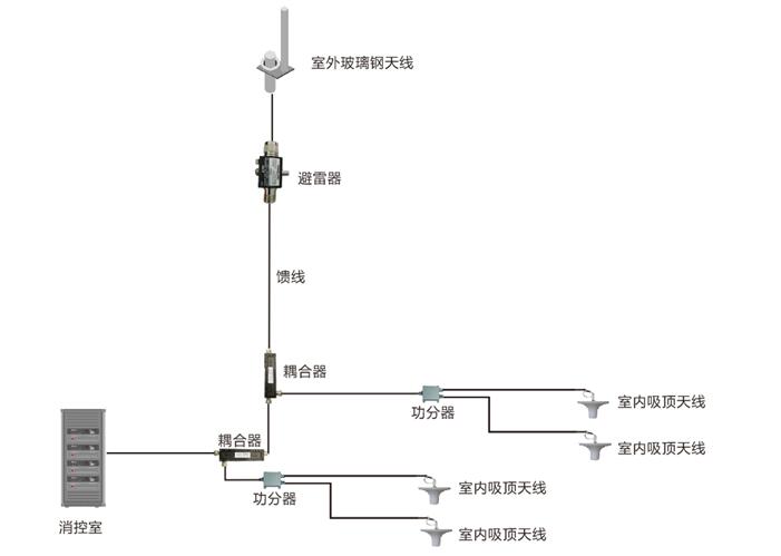 ![]() 在需要覆蓋的地區(qū)中心(消控室)放置中轉臺,通過合路分路、干線放大器以及天饋系統(tǒng)等設備,將中轉臺的接收、發(fā)射天線分布于預覆蓋地區(qū)的各個角落。當對講機發(fā)起呼叫時,不再是靠對講機本機功率直接呼叫另一部對講機,而是呼叫中轉臺距離該對講機最近的接收天線,中轉臺收到該天線的傳回的呼叫信號后,控制所有發(fā)射天線自動轉發(fā)該呼叫信號,這樣,無論被呼叫的對講機在何位置,均能接收到呼叫信號。