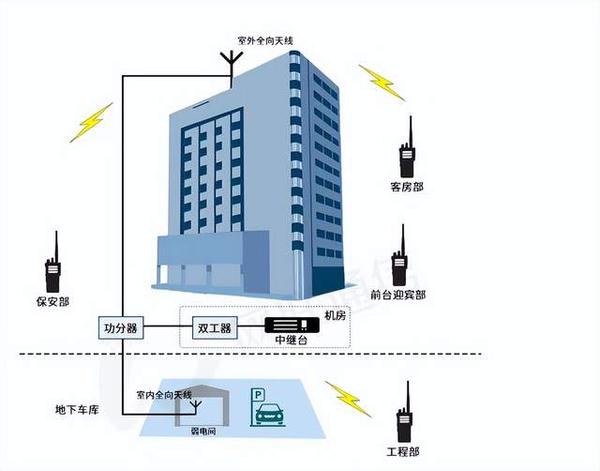 主頁(http://www.www.xzhtuan.com):酒店樓宇|多信道智能共享無線通信解決方案 隨著城市建設(shè)的不斷發(fā)展,建筑規(guī)模的增大、地面/地下樓層的增加等一系列復(fù)雜環(huán)境對專業(yè)通訊設(shè)備提出了更高的要求,無線對講通信系統(tǒng)的穩(wěn)定性、覆蓋范圍、聲音清晰度、應(yīng)急能力尤為重要。 在繁忙的工作中,便捷的通訊是樓宇大廈工作人員日常服務(wù)和管理的基本保障,無線對講通訊設(shè)備的作用在于,為工作人員提供及時處理客戶需求和突發(fā)事件的溝通渠道,讓各個部門之間可以快速交流信息、協(xié)調(diào)工作,從而提高整體運(yùn)營效率. 需求分析 無線通信需要覆蓋整個建筑物,包括各樓層和地下室、停車場、電梯井等區(qū)域的通信,確保信息的快速準(zhǔn)確傳遞。當(dāng)對講機(jī)數(shù)量增多,要確保多部門使用時相互之間不受干擾,通話清晰順暢,避免因通信不暢而造成的工作延誤及事故。除簡單的語音對講外,無線通信還需要增加語音調(diào)度和快速響應(yīng)功能,以及時傳遞警報信息、快速應(yīng)對突發(fā)情況,保障員工和客人的生命財產(chǎn)安全。