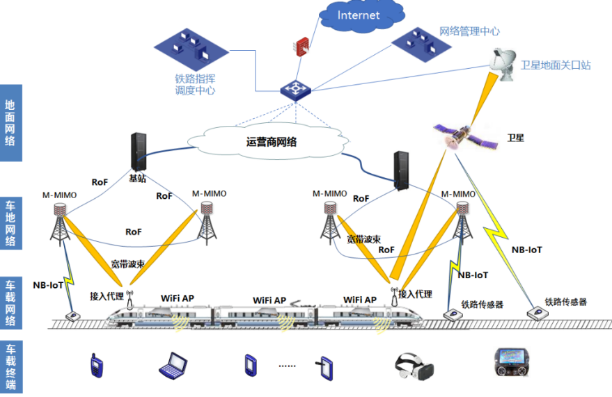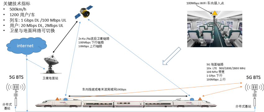 圖2星-車-地高速大容量鐵路移動通信示意圖