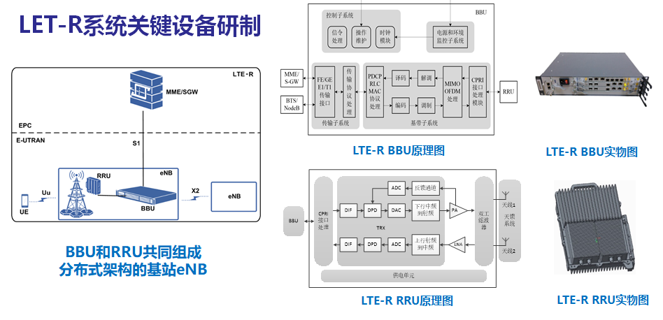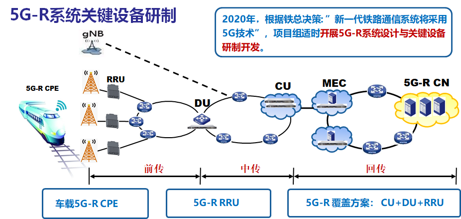 圖5新一代鐵路無線移動通信系統(tǒng)(5G-R)網(wǎng)絡(luò)架構(gòu)與關(guān)鍵設(shè)備 中心合作開發(fā)的鐵路5G專網(wǎng)基站(gNB)包括兩種產(chǎn)品形態(tài),即BBU+RRU或CU+DU+RRU,基于通用計算平臺,軟件采用CU-DU分離架構(gòu),支持虛擬化部署方式,集成邊緣計算節(jié)點。支持北斗、GPS和1588 v2多種同步方式◦ 單設(shè)備支持到16T16R流量(>5Gbps吞吐率),支持單通道5W/10W/20W發(fā)射功率,滿足隧道、區(qū)間和ZC不同覆蓋場景。泰通5G-R大功率車載CPE基于LS1046A ARM處理器、LA1200基帶處理器、PMU以及大功率放大器等核心器件組成;诨镜脑O(shè)計思路,開發(fā)適合鐵路的4T4R大功率車載模塊,每路輸出33dBm,總功率39dBm(8W)。2020年底鐵路5G產(chǎn)品在鐵科環(huán)線進(jìn)行試用。