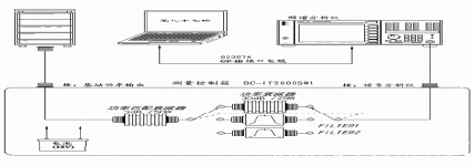 圖2 測(cè)試系統(tǒng)連接狀態(tài) 測(cè)試系統(tǒng)的主要功能包括:用戶(hù)管理、儀器在線(xiàn)狀態(tài)診斷、系統(tǒng)校準(zhǔn)、測(cè)試規(guī)劃編制、斷點(diǎn)續(xù)測(cè)、數(shù)據(jù)記錄與管理、原始記錄和測(cè)試報(bào)告生成等主要模塊,最大限度地減少了人為參與和干預(yù)的因素,有助于提高測(cè)試效率,是一套準(zhǔn)自動(dòng)化測(cè)試系統(tǒng)。 3.4 測(cè)試系統(tǒng)的使用步驟和測(cè)試方法 基站的現(xiàn)場(chǎng)檢測(cè)工作,需要測(cè)試單位和受檢單位的緊密配合,必須預(yù)先商定測(cè)試計(jì)劃,明確測(cè)試地點(diǎn)和時(shí)間,測(cè)試單位還要事先向受檢單位說(shuō)明檢測(cè)的步驟,提出配合檢測(cè)的必要條件和測(cè)試的方法,使受檢單位相關(guān)崗位人員事前通知,并知曉如何有效配合,保證測(cè)試順利進(jìn)行。到達(dá)測(cè)試現(xiàn)場(chǎng)后,需要做以下工作: 首先要做的是準(zhǔn)備工作。 一是應(yīng)根據(jù)被測(cè)設(shè)備的安放方式、交流電源插座和測(cè)試端口位置,確定和部置測(cè)試儀器設(shè)備安放位置,滿(mǎn)足方便連接和便于操作的需要。此次的被測(cè)設(shè)備均為諾基亞BTS800i型基站,測(cè)試端口統(tǒng)一定位于載頻合路器射頻輸出口。二是開(kāi)啟儀器和筆記本電腦處于正常工作狀態(tài),連接測(cè)試電纜、測(cè)試控制箱、陷波器,使測(cè)試回路處于準(zhǔn)備調(diào)整的狀態(tài)。 其次,記錄被測(cè)設(shè)備信息和調(diào)整陷波器中心頻率。 一是啟動(dòng)自動(dòng)測(cè)試軟件,選擇被測(cè)設(shè)備類(lèi)型,編輯測(cè)試任務(wù)規(guī)劃(可預(yù)先編輯),填寫(xiě)基站信息(名稱(chēng)、坐標(biāo)、啟用時(shí)間)、測(cè)試設(shè)備信息(型號(hào)、序號(hào))和報(bào)告基礎(chǔ)信息(報(bào)告編號(hào)、日期、檢測(cè)人員等)。 二是調(diào)整陷波器。這需要和運(yùn)營(yíng)商進(jìn)行配合,先要由網(wǎng)管中心把基站信號(hào)關(guān)閉,斷開(kāi)被測(cè)設(shè)備的正常發(fā)射回路,將測(cè)試控制箱連接到基站設(shè)備的射頻信號(hào)輸出端口上,并將控制箱置“衰減器”檔;然后由網(wǎng)管中心控制基站發(fā)出符合測(cè)試要求的信號(hào),TETRA測(cè)試規(guī)定的信號(hào)為T(mén)1格式(單載頻、單時(shí)隙、滿(mǎn)功率)的信號(hào),此次測(cè)試載頻全部設(shè)置為中間信道,載頻858.5125MHz,信道號(hào)為2340;之后設(shè)置頻譜儀使被測(cè)信號(hào)顯示正確,反復(fù)調(diào)整陷波器旋鈕使頻譜儀顯示信號(hào)幅度最小,并保持旋鈕位不動(dòng);再之后,更換連接電纜,如圖3所示(圖中點(diǎn)劃線(xiàn)部分為調(diào)整濾波器的連接,虛線(xiàn)部分為實(shí)測(cè)時(shí)的連接)。