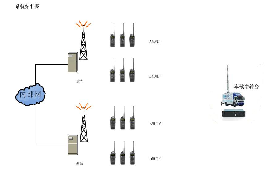 2. 系統(tǒng)規(guī)模及組網(wǎng)說明 1) 系統(tǒng)規(guī)模 系統(tǒng)由3個IP漫游數(shù)字基站、2臺車載臺及45臺手持對講機等組成。本系統(tǒng)采用超短波通信,具體分設(shè)如下: ① 固定數(shù)字系統(tǒng)基站:XIR R8200漫游中繼臺2套,分別架設(shè)在五桂山及馬山天線塔高處位置,利用已有的數(shù)據(jù)專網(wǎng)作為鏈路,靈活的組建大范圍區(qū)域的互聯(lián)互通的無線通訊指揮系統(tǒng)網(wǎng)絡(luò)。用于保證對講機在使用現(xiàn)場區(qū)域范圍內(nèi)訊號覆蓋。 ②數(shù)字手持對講機:45臺(其中XIR P8260 手持對講機25臺及XIR P8268手持對講機20臺),在信號覆蓋區(qū)域范圍內(nèi)的工作人員使用。 ③車載對講機:XIR M8268車載對講機2臺,裝于指揮調(diào)度車上,供指揮員調(diào)度指揮用。 ④移動數(shù)字系統(tǒng)基站:XIR R8200集群中繼臺1套,裝于大型演出車上,用于演出現(xiàn)場指揮調(diào)度用。 2) 頻率分組說明 對于中山電視臺數(shù)字無線對講系統(tǒng),系統(tǒng)由兩大部分組成:一是由兩個固定基站組成的大范圍覆蓋的漫游系統(tǒng),另一是裝于演出車上的集群系統(tǒng)。對講機也根據(jù)相應(yīng)的使用功能分為漫游頻道及集群頻道。當工作人員在城區(qū)范圍值勤時,使用漫游頻道即可以與同組人員通話。當演出車對講系統(tǒng)啟用時,對講機啟用集群頻道即可實現(xiàn)各組的通訊。 頻道分組: