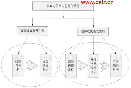 1、引言 2007年8月30日,全國人大常務(wù)委員會通過了“中華人民共和國突發(fā)事件應(yīng)對法”,其中第33條規(guī)定:國家建立健全應(yīng)急通信保障體系,完善公用通信網(wǎng),建立有線與無線相結(jié)合、基礎(chǔ)電信網(wǎng)絡(luò)與機動通信系統(tǒng)相配套的應(yīng)急通信系統(tǒng),確保突發(fā)事件應(yīng)對工作的通信暢通。由此可以看出國家對于應(yīng)急通信系統(tǒng)建設(shè)的重視程度。 應(yīng)急通信一般是指在出現(xiàn)自然或人為的突發(fā)性緊急情況時,為應(yīng)對緊急情況而綜合利用各種通信資源實現(xiàn)通信的機制。根據(jù)不同的應(yīng)用場合,應(yīng)急通信系統(tǒng)主要有以下兩種不同的類型: (1)保障和支撐公眾電信網(wǎng)運行安全的應(yīng)急通信系統(tǒng)。當(dāng)通信網(wǎng)設(shè)施遭受破壞、性能降級、異常高話務(wù)量或特殊通信保障任務(wù)情況下,主要由運營商采取必要的應(yīng)急措施,能夠及時恢復(fù)國際、國家、地區(qū)或本地的通信能力。 (2)城市應(yīng)急聯(lián)動系統(tǒng)CERS(CityEmergencyResponseSystem)。城市應(yīng)急聯(lián)動系統(tǒng)就是綜合各種城市應(yīng)急服務(wù)資源,采用統(tǒng)一的號碼,用于公眾報告緊急事件和緊急求助,統(tǒng)一接警,統(tǒng)一指揮,聯(lián)合行動,為市民提供相應(yīng)的緊急救援服務(wù),為城市的公共安全提供強有力的保障。 本文將重點對第一種應(yīng)急通信系統(tǒng)的相關(guān)實現(xiàn)流程進行探討,并對流程中每一階段可能涉及到的主要技術(shù)進行闡述。需要說明的是,本文中涉及到的應(yīng)急通信系統(tǒng),主要是指為保證公眾通信網(wǎng)正常運行而采取的各種措施和手段。 2、公眾電信網(wǎng)應(yīng)急通信系統(tǒng)的基本工作流程 從工作流程看,公眾電信網(wǎng)應(yīng)急通信系統(tǒng)從準(zhǔn)備到啟動可以分為兩個階段: (1)在故障或災(zāi)難發(fā)生之前,主要需要完成兩方面的工作,一是對現(xiàn)有網(wǎng)絡(luò)進行抗毀性分析,發(fā)現(xiàn)網(wǎng)絡(luò)存在的弱點,評估網(wǎng)絡(luò)的魯棒性(Robust);二是制定網(wǎng)絡(luò)應(yīng)急預(yù)案,以應(yīng)對網(wǎng)絡(luò)中可能出現(xiàn)的突發(fā)狀況。 (2)在故障或災(zāi)難發(fā)生之后,主要需要完成三方面的工作,一是在故障或災(zāi)難發(fā)生之后,對網(wǎng)絡(luò)中出現(xiàn)的故障點能夠進行快速定位;二是對網(wǎng)絡(luò)通過自愈能力進行恢復(fù)的評估;三是在網(wǎng)絡(luò)全部或局部無法進行自恢復(fù)的情況下,啟動應(yīng)急預(yù)案。 圖1所示為公眾電信網(wǎng)應(yīng)急通信系統(tǒng)相關(guān)流程。本文針對兩個階段五個方面的工作流程分別進行討論。