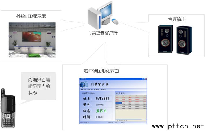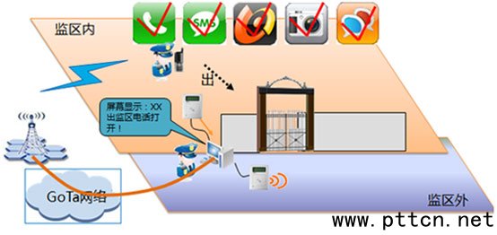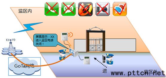 采用監(jiān)管區(qū)的無(wú)線信號(hào)屏蔽方案限制語(yǔ)音功能,投資成本高,實(shí)施難度大。如果監(jiān)獄在市區(qū)附近,還影響監(jiān)獄周邊用戶使用語(yǔ)音功能。GoTa系統(tǒng)可以通過(guò)無(wú)線,遠(yuǎn)程對(duì)GoTa終端進(jìn)行精確控制,如控制終端普通語(yǔ)音、短信、數(shù)據(jù)業(yè)務(wù)、攝像頭等的開啟和關(guān)閉。該功能和門禁系統(tǒng)融合,用于在某一特殊區(qū)域控制終端可用的功能,比如在監(jiān)管區(qū)中,需要將獄警終端的語(yǔ)音、短信、數(shù)據(jù)等業(yè)務(wù)全部關(guān)閉,只留下集群業(yè)務(wù)。