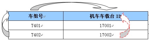 調(diào)度區(qū)切換示意圖 2.在調(diào)度臺上用功能號(車組號、司機號、車次號)呼叫機車電臺 在地鐵應(yīng)用日常工作中,通常用到下列功能號: 1) 列車車次號(TRN)–根據(jù)列車運行線路和發(fā)車時間的不同,可將TRN動態(tài)分配給任何列車。 2) 列車司機號–列車司機號用于標識正在駕駛列車的司機。 3) 列車車組號–車組號是分配給每個車組的唯一ID,車組號是固定的,并用于標識機車。 (1)車組號呼叫 每趟列車都有自己固定的車組號,與之相對應(yīng),安裝在每個機車上的車載臺也都有自己固定的電臺ID,它們之間的對應(yīng)關(guān)系是固定不變的。 車組號與車載臺之間的對應(yīng)關(guān)系可采用數(shù)據(jù)表格的形式反映在調(diào)度系統(tǒng)服務(wù)器的數(shù)據(jù)庫中,這種對應(yīng)關(guān)系一旦確定,不會輕易改變,因此當調(diào)度員使用車組號呼叫列車時,實際上對應(yīng)于用機車車載臺ID號直接進行呼叫,這是Dimetra IP系統(tǒng)直接支持的功能。 列車車組號對應(yīng)車載臺ID的呼叫實現(xiàn)方式如表1所示。