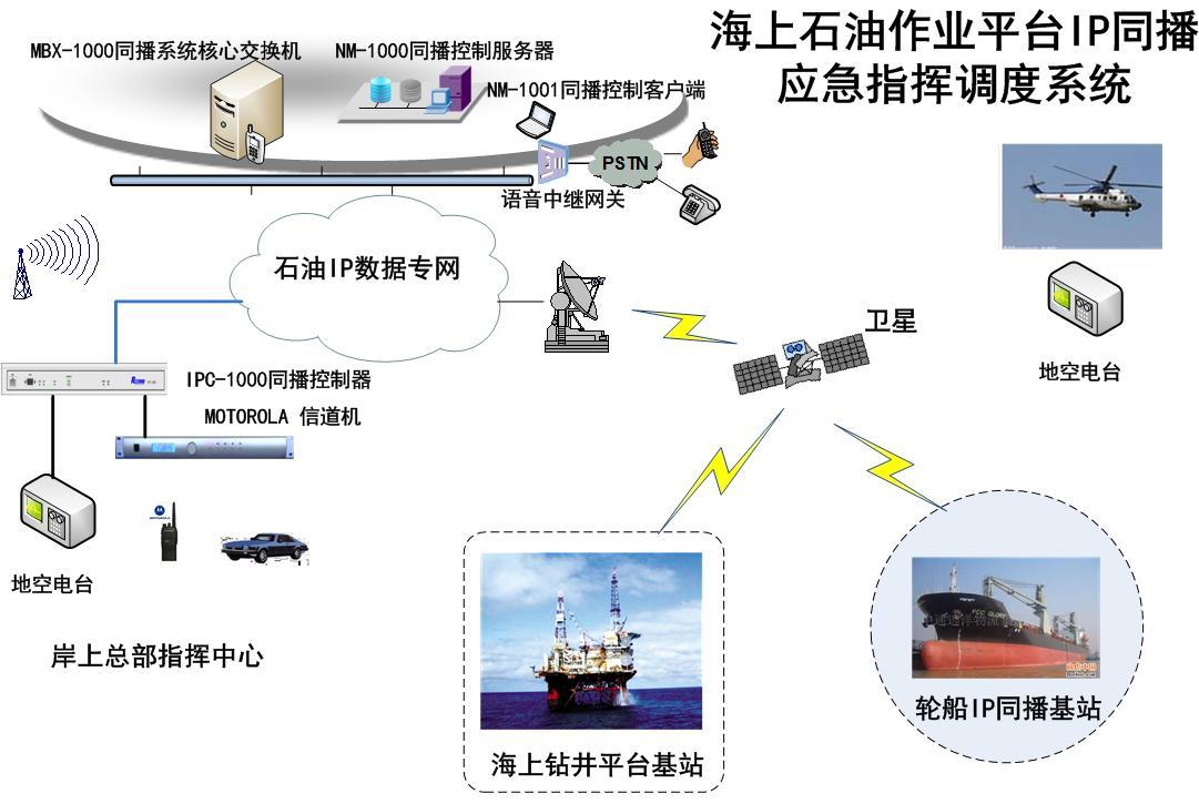 實(shí)現(xiàn)整個(gè)油田群主平臺(tái)的互聯(lián)互通。有專門有線電話接入口,接入無線同播系統(tǒng),可以使陸地用戶直接與海上通信,做為應(yīng)急直接聯(lián)絡(luò)備用手段。