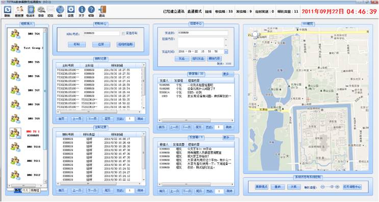 SmartDispatch無線調(diào)度臺的應(yīng)用 1.語音 語音是煤田調(diào)度工作中最常用、最重要的功能。摩托羅拉TETRA數(shù)字集群網(wǎng)絡(luò)能夠保證高清晰度的語音和超強的抗干擾能力,自系統(tǒng)上線以來,得到了用戶的高度評價!用戶高興的說:“工作人員能夠以音辨人了”。 2.短數(shù)據(jù) 信息的交流,為優(yōu)質(zhì)的工作提供堅實的基礎(chǔ),摩托羅拉TETRA數(shù)字集群網(wǎng)絡(luò)使調(diào)度工作脫離了單一化的語音時代。 神華集團(tuán)內(nèi)蒙古準(zhǔn)格爾能源有限責(zé)任公司要求:調(diào)度臺能夠良好的支持短信息數(shù)據(jù),方便調(diào)度工作當(dāng)中通過文字來派發(fā)、接收詳細(xì)的工作內(nèi)容。 短數(shù)據(jù)開發(fā),采用了SDTS協(xié)議,調(diào)度臺完美支持1000字,并能支持定制時間發(fā)送。 3.GIS系統(tǒng) 近年來,更多的煤田企業(yè)開始應(yīng)用GIS系統(tǒng),無論在日常調(diào)度工作當(dāng)中,還是在緊急突發(fā)事件搶險工作當(dāng)中,GIS系統(tǒng)都擔(dān)負(fù)著相當(dāng)重要的地位。 神華集團(tuán)內(nèi)蒙古準(zhǔn)格爾能源有限責(zé)任公司礦區(qū)地理分布分散,日常調(diào)度工作進(jìn)行困難,對于GIS系統(tǒng)的需要相當(dāng)迫切。其初期想投資建設(shè)一套獨立的GIS系統(tǒng),這不但加大了企業(yè)投資,系統(tǒng)之間也各成孤島。 摩托羅拉TETRA數(shù)字集群網(wǎng)絡(luò)可以完美的支持GPS定位,數(shù)據(jù)編碼支持TETRA標(biāo)準(zhǔn)的LIP協(xié)議以及摩托羅拉專有協(xié)議LRRP。利用這一功能,在調(diào)度系統(tǒng)中加入了GIS功能,GPS數(shù)據(jù)編碼傳輸采用的是TETRA標(biāo)準(zhǔn)協(xié)議中的LIP格式,最高支持10秒一次的上傳頻率,已足夠勝任煤田調(diào)度工作。并且,調(diào)度臺GIS系統(tǒng)為用戶提供了基于事件的路徑回放能力,可以回放指定終端的行動軌跡。 此功能的加入,幫助用戶解決了調(diào)度工作中迫切需要GIS系統(tǒng)的需求,為用戶節(jié)省了單獨開發(fā)GIS系統(tǒng)的資金。