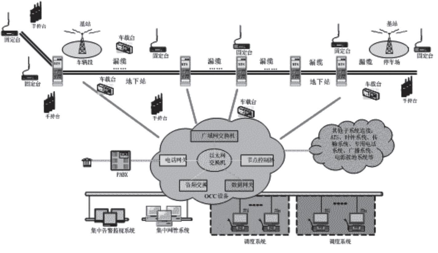 城市軌道交通的無線數(shù)字集群系統(tǒng)主要用于解決控制中心調(diào)度員、車輛段調(diào)度員、車站值班員等固定用戶與列車司機(jī)及防災(zāi)、維修、公安等移動用戶之間的通話及數(shù)據(jù)傳輸問題,是提高運(yùn)輸效率、確保行車安全及應(yīng)對突發(fā)事件的必要手段,在城市軌道交通的列車運(yùn)營和日常管理中發(fā)揮著關(guān)鍵作用。