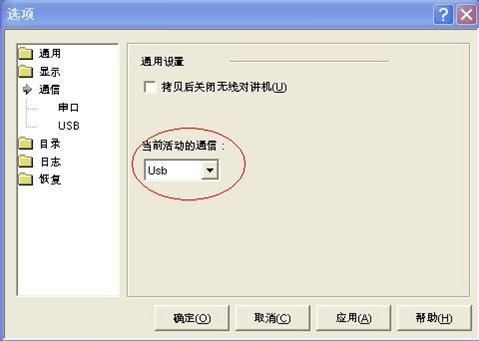 選擇目錄“通信”,在當(dāng)前活動(dòng)通信選擇“USB” (如圖5所示)。