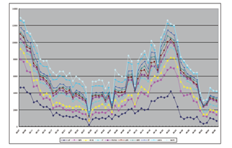 從“系統(tǒng)呼叫次數(shù)”及“系統(tǒng)一天最忙時(shí)工作量”兩個(gè)曲線圖可以看出,進(jìn)入大修期,在各個(gè)裝置都停機(jī)完畢后(3 月10 日前后),系統(tǒng)的負(fù)荷開始降低,并有恢復(fù)到正常生產(chǎn)時(shí)的使用率的趨勢。