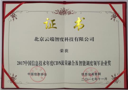 主頁(http://www.www.xzhtuan.com):云端智度獲年度CDN流量融合及智能調(diào)度領(lǐng)軍企業(yè)獎(jiǎng) 11月16日,由中國信息協(xié)會(huì)主辦的“2017中國信息技術(shù)主管大會(huì)”在北京市新世紀(jì)日航飯店隆重舉行,云端智度憑借智能融合CDN平臺(tái)的卓越表現(xiàn),榮獲“2017年度CDN流量融合及智能調(diào)度領(lǐng)軍企業(yè)獎(jiǎng)”。