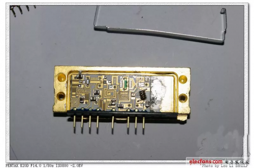 馬蘭士c150 c450百分之九十五都死在電解電容上了…… 特寫一下這兩個芯片 這個最大個的應該是cpu了吧 看看芯片下面淡淡的黃色,那是黃金走線呀!看看旁邊藍色的繞線電感這做工 太贊了! 繼續(xù)芯片特寫 下半部分特寫,屏住呼吸哈,就要轉身了 呵呵 漂亮吧?最下面的 塑料塊是加密模塊的站位塊,上面是各種功能模塊。 全是模塊化設計,方便戰(zhàn)場上快速修理,整機所有單元都是插接在主板上的,部件通用化程度非常高,跟槍械的設計理念是樣的,可以非常方便的用尸體拼裝。 而且好多部件不同頻率的機器 不同型號甚至不同代的機器都是通用的。 全是模塊化設計,方便戰(zhàn)場上快速修理,整機所有單元都是插接在主板上的,部件通用化程度非常高,跟槍械的設計理念是樣的,可以非常方便的用尸體拼裝。 而且好多部件不同頻率的機器 不同型號甚至不同代的機器都是通用的。 側面在再看一眼。 晶振拆下來也再給一個特寫吧 晶振特寫,下面是濾波器模塊 這個是頻率合成器模塊也就是最大的那個模塊拆開之后…… 兩個金燦燦的東西很誘人呀 不知道是啥玩意…… 正面特寫 下面是最最精彩的壓軸好戲 功放塊 哈哈 背面金燦燦的太漂亮了 下面華麗轉身 下面功放塊開始曝光了哈 最漂亮的在這呢 金燦燦的 陶瓷基板上面的走線都是金的 開閃光燈的了 漂亮吧 印刷電感 高頻走線 簡直是藝術品 換個角度 看到隱約的金絲了么? 下面標頭反接 微距特寫 一根一根的金絲呀 都是金子呀 提個問題 為啥是裸露的硅片呢 怎么沒有環(huán)氧樹脂封裝呢? 全是裸硅片加金線,下面繼續(xù)科普,在高頻信號電路中很多新片都是沒有外部封裝的,直接用金線連接外部電路,這樣做的好處主要是可以降低封裝電容和分布電感。 因為信號頻率一旦高了之后,原本絕緣的東西就變得不再絕緣了,而是形成了電容從而使信號通過電容耦合到別處,另外對于高頻