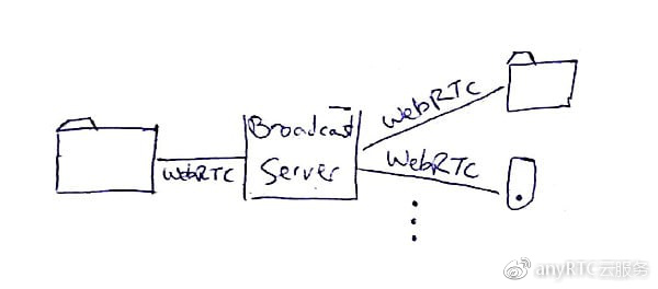 圖2 圖2是WebRTC做直播的架構,所有的流媒體都會走WebRTC通道,這樣可以保證整個流媒體從推流端到觀看端的每個環(huán)節(jié)都能使用WebRTC的特性。 當然使用WebRTC做直播有很多難點需要攻克,廣播服務器需要具備大容量,大并發(fā),低延時,可動態(tài)伸縮,可災備等一些列高級特性,而不僅僅是簡單的媒體流轉發(fā)。 要做到這些,我們需要一個完全不同的服務器架構來實現(xiàn)WebRTC流媒體的轉發(fā),這與當今市場上的一些方案(開源和商業(yè)方案)有所不同。因為現(xiàn)有的方案服務器上的WebRTC實現(xiàn)幾乎是背靠背的實現(xiàn)——它們在服務端對每個連接模擬一個完整的客戶端來接收或轉發(fā)WebRTC的媒體流。這樣實現(xiàn)沒有問題,但是它很難應對上千、幾萬或數(shù)百萬的大并發(fā)連接。 anyRTC如何實現(xiàn)