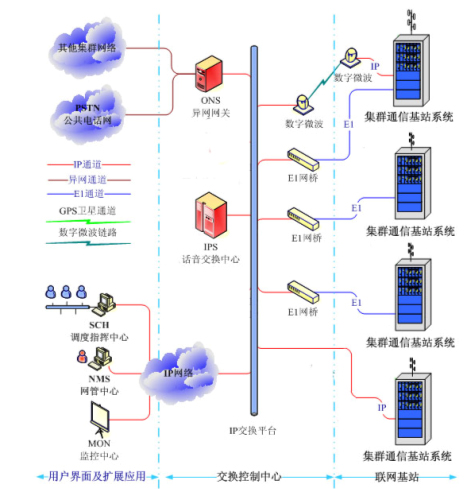 集群通信系統(tǒng)由聯(lián)網(wǎng)交換控制中心、集群通信基站系統(tǒng)和移動(dòng)終端構(gòu)成。