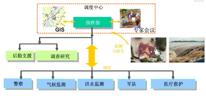 ● 滿足無(wú)線數(shù)據(jù)傳輸需求 各政府部門除了滿足集群語(yǔ)音通信的要求外,還要求信息、數(shù)據(jù)的通信需求。如當(dāng)人員外出時(shí)能夠訪問(wèn)部門內(nèi)部網(wǎng)絡(luò)上傳和下載數(shù)據(jù);各重要地點(diǎn)的圖像監(jiān)控和圖像上傳;各行業(yè)的數(shù)據(jù)采集和傳輸?shù)。GoTa提供了高速的數(shù)據(jù)傳輸能力,很好解決政府部門的無(wú)線數(shù)據(jù)傳輸要求。短信系統(tǒng)可以實(shí)現(xiàn)部門內(nèi)部和部門之間的消息通知。 5.2 典型應(yīng)用實(shí)例 自然災(zāi)害: