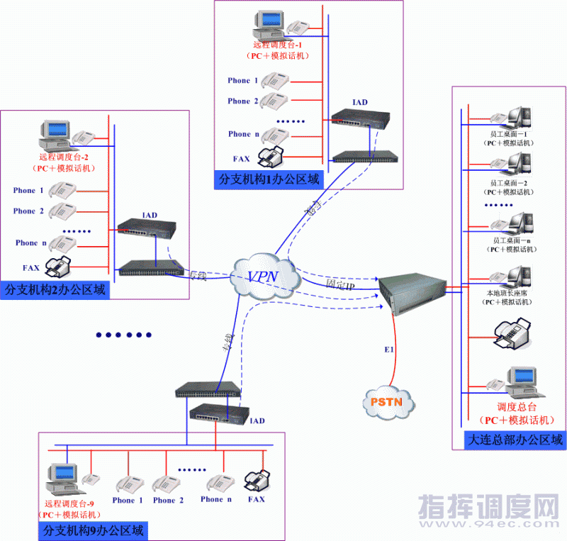 主頁(yè)(http://www.www.xzhtuan.com):融天科技:大連市政府高效應(yīng)急調(diào)度指揮系統(tǒng) 一、項(xiàng)目背景為積極響應(yīng)國(guó)家提出了數(shù)字城市、平安中國(guó)的號(hào)召,大連市政府部署一套IP調(diào)度指揮調(diào)度系統(tǒng),融天科技RT-CCP1000 IP調(diào)度系統(tǒng)以平臺(tái)一體化、業(yè)務(wù)多樣化、組網(wǎng)靈活化、維護(hù)擴(kuò)容簡(jiǎn)單化等眾多優(yōu)勢(shì)中標(biāo)該項(xiàng)目。 二、融天方案 本次項(xiàng)目中,融天科技為大連市政府部署的防火調(diào)度指揮系統(tǒng)涉及點(diǎn)包括市政府中心調(diào)度室和分布在大連市各轄區(qū)的9個(gè)遠(yuǎn)程指揮小組,中心調(diào)度室通過(guò)RT-CCP1000一體化調(diào)度平臺(tái)部署10個(gè)中心調(diào)度值班員,轄區(qū)的9個(gè)遠(yuǎn)程指揮小組通過(guò)大容量IAD設(shè)備和政府VPN專(zhuān)網(wǎng)遠(yuǎn)程注冊(cè)到中心調(diào)度室RT-CCP1000平臺(tái)上,同時(shí)RT-CCP1000平臺(tái)與本地的PSTN通過(guò)一條數(shù)字中繼E1連接,作為系統(tǒng)的出入口。如下圖所示: ![]() RT-CCP1000:調(diào)度交換平臺(tái),完成提供電話交換、PSTN接入、調(diào)度總機(jī)、分機(jī)電話接入,等功能, 另外,RT-CCP1000上將安裝數(shù)據(jù)庫(kù)軟件,作為調(diào)度所有數(shù)據(jù)的倉(cāng)庫(kù)。 調(diào)度臺(tái):由一臺(tái)普通PC和一部電話構(gòu)成,所有的調(diào)度功能都在調(diào)度臺(tái)上實(shí)現(xiàn)。 調(diào)度分機(jī):一臺(tái)普通電話或者遠(yuǎn)程分支機(jī)構(gòu)的電話,可以是系統(tǒng)內(nèi)部的分機(jī),也可以是PSTN上的電話,或者手機(jī),或者是注冊(cè)在RT-CCP1000上的IP電話。 功能介紹: PSTN接入:一條E1數(shù)字中繼,提供30路外線同時(shí)通話的能力。 調(diào)度分機(jī)分組:可自由對(duì)所有分機(jī)進(jìn)行分組,一個(gè)分機(jī)可屬于多個(gè)組,可臨時(shí)建組,使用后刪除,不影響其它組; 狀態(tài)顯示:調(diào)度界面可實(shí)時(shí)顯示呼叫用戶(hù)狀態(tài),如:空閑、通話、振鈴、掛機(jī)等; 來(lái)電顯示:根據(jù)數(shù)據(jù)庫(kù)中記錄,可顯示來(lái)電者詳細(xì)資料; 來(lái)電調(diào)度:調(diào)度員可對(duì)來(lái)電進(jìn)行保持、攔截、掛斷、轉(zhuǎn)移等多種調(diào)度操作; 電話號(hào)碼庫(kù):所有的分機(jī)及它們相關(guān)者的姓名都儲(chǔ)存在系統(tǒng)內(nèi)部的電話號(hào)碼簿中,可以在搜尋這些號(hào)碼,并直接撥通它們; 號(hào)碼捆綁:普通用戶(hù)可自己設(shè)置/取消自己的分機(jī)號(hào)碼與外線號(hào)碼捆綁; 交替通話:在兩個(gè)打通的電話之間交替進(jìn)行通話; 組呼和群呼:可以對(duì)小組內(nèi)、及多個(gè)小組的所有電話同時(shí)進(jìn)行呼叫,進(jìn)行廣播調(diào)度; 輪流呼叫調(diào)度:針對(duì)一個(gè)或多個(gè)電話號(hào)碼進(jìn)行輪流呼叫,直到呼通其中一個(gè)號(hào)碼為止; 縝密監(jiān)聽(tīng):可對(duì)線路進(jìn)行語(yǔ)音監(jiān)聽(tīng); 會(huì)議:系統(tǒng)可以同時(shí)向外撥出多個(gè)電話,當(dāng)撥通后自動(dòng)將多條話路并在一起,實(shí)現(xiàn)會(huì)議; 分組會(huì)議:可以根據(jù)不同的策略進(jìn)行分組,然后同時(shí)快速的將幾組電話向外撥號(hào),撥通后,各組在組內(nèi)自動(dòng)相連,實(shí)現(xiàn)分組會(huì)議的功能; 強(qiáng)插強(qiáng)拆:若群內(nèi)用戶(hù)正在通話,可以通過(guò)插入調(diào)度提示音或直接話音插入的方法進(jìn)行調(diào)度。也可以通過(guò)將調(diào)度用戶(hù)拆線后接入的方法進(jìn)行調(diào)度; 轉(zhuǎn)移:對(duì)于正在進(jìn)行的話路轉(zhuǎn)移到其它調(diào)度指揮臺(tái)或調(diào)度分機(jī)上; 錄音及回放:可對(duì)指定通話進(jìn)行錄音,并在任何時(shí)候調(diào)出錄音存檔進(jìn)行播放; 禁打:限制調(diào)度分機(jī)部分功能,可設(shè)置調(diào)度分機(jī)不能接聽(tīng)以及不能呼叫功能; 來(lái)話保留:可以記錄已接來(lái)話、未接聽(tīng)來(lái)話、已呼出號(hào)碼,供調(diào)度參考,以及快速進(jìn)行呼叫; 優(yōu)先呼叫:可設(shè)置電話的優(yōu)先級(jí)別,并根據(jù)優(yōu)先級(jí)別進(jìn)行呼叫排隊(duì); 傳真:可進(jìn)行傳真的轉(zhuǎn)發(fā)和接收; 調(diào)度鍵盤(pán):調(diào)度系統(tǒng)操作界面分為軟、硬鍵盤(pán),軟鍵盤(pán)主體界面截圖如下: 主窗口(參看圖上圖)共分為四個(gè)區(qū):標(biāo)題欄(頂部),用戶(hù)鍵盤(pán)區(qū)(中左),中繼鍵盤(pán)區(qū)(中右)和功能及狀態(tài)區(qū)(底部)。 在此界面中實(shí)現(xiàn)了配置管理功能和呼叫相關(guān)功能。配置管理分為:設(shè)置、修改和刪除分組,設(shè)置用戶(hù),設(shè)置中繼,翻頁(yè)等功能;呼叫相關(guān)功能:強(qiáng)接、強(qiáng)拆、強(qiáng)插、監(jiān)聽(tīng)、轉(zhuǎn)接、組呼、設(shè)定等級(jí)、設(shè)定權(quán)限、設(shè)定夜服、會(huì)議相關(guān)等功能。另外,可以在本軟調(diào)度系統(tǒng)中檢索瀏覽相關(guān)通話記錄,并可對(duì)錄音進(jìn)行回放。 目前系統(tǒng)已經(jīng)順利上線,大連市林業(yè)局實(shí)現(xiàn)了對(duì)森林的統(tǒng)一管理和調(diào)度,有效預(yù)防和處理城市可能發(fā)生的疫情災(zāi)害、自然災(zāi)害、