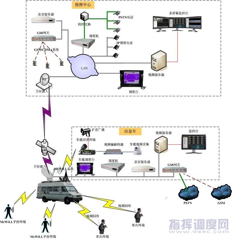 主頁(http://www.www.xzhtuan.com):捷思銳:應(yīng)急車載調(diào)度系統(tǒng)解決方案 一、 概述 隨著社會經(jīng)濟和文化生活的不斷發(fā)展,公眾服務(wù)和公共安全就成為政府部門和各行業(yè)的一個非常重要的工作。提高政府及各行業(yè)對緊急、突發(fā)事件的快速反應(yīng)和抗風(fēng)險的能力,建設(shè)移動指揮系統(tǒng)為公眾提供更快捷的緊急救助服務(wù),已成為社會一個迫切的課題。對重大突發(fā)事件的現(xiàn)場高效指揮調(diào)度處理能力已經(jīng)成為現(xiàn)代化管理程度的重要標(biāo)志之一。在一些突發(fā)事件發(fā)生時(例如地震、火災(zāi)、洪災(zāi)),公用的通信系統(tǒng)有可能遭到破壞已經(jīng)無法滿足處理緊急事件的要求,ZED-3車載應(yīng)急調(diào)度系統(tǒng)能在緊急情況下快速抵達事發(fā)地點,建立無阻塞的應(yīng)急通信網(wǎng)絡(luò)和快速有效的指揮調(diào)度網(wǎng)絡(luò),保障快速、及時、準(zhǔn)確收集到現(xiàn)場信息,為指揮任務(wù)提供實時的決策信息。系統(tǒng)具有快速機動和廣泛通信能力,具備可部署性、高靈敏性、多功能性,對實施現(xiàn)場緊急救援和指揮調(diào)度工作起著不可缺少的重要作用。 Zed-3的車載調(diào)度系統(tǒng),具有功能豐富、接口多樣、系統(tǒng)穩(wěn)定可靠等特點?蓪崿F(xiàn)基于移動的調(diào)度指令下發(fā)、成員狀態(tài)監(jiān)控、各種調(diào)度終端協(xié)同工作等功能,從而滿足移動、快速應(yīng)急通信等需求。且Zed-3的車載調(diào)度系統(tǒng)具有良好的抗震性,非常適用于車輛部署。 二、 方案描述 車載應(yīng)急指揮系統(tǒng)包括視頻監(jiān)控、救援通信、救援指揮、信息處理等一體化綜合系統(tǒng),是一個以計算機通信網(wǎng)絡(luò)為核心的、獨立多媒體綜合信息應(yīng)用系統(tǒng),是采用空中與地面相結(jié)合、有線與無線相結(jié)合、固定與機動相結(jié)合的立體化、快速反應(yīng)的移動寬帶指揮系統(tǒng),其主要實現(xiàn)指揮中心與突發(fā)事故現(xiàn)場之間動態(tài)圖像、語音及數(shù)據(jù)的實時傳送,實現(xiàn)各種業(yè)務(wù)數(shù)據(jù)庫、決策支持數(shù)據(jù)庫等數(shù)據(jù)信息的共享和處理,實現(xiàn)指揮中心對各種資源及救援現(xiàn)的統(tǒng)一指揮和調(diào)度。該系統(tǒng)技術(shù)先進、組網(wǎng)靈活、模塊化升級、實時性好、可靠性高、方便易用。 2.1 系統(tǒng)說明 基于McWiLL的多媒體調(diào)度系統(tǒng)車載解決方案包括指揮中心、McWiLL無線通信、現(xiàn)場應(yīng)急車、單兵可視調(diào)度終端、手持調(diào)度終端等。系統(tǒng)建成后,指揮中心可通過光纖傳輸網(wǎng)、McWiLL無線信道建立與應(yīng)急車的通信信道。指揮調(diào)度系統(tǒng)具備強大的通信交換能力,為指揮中心與各通信車、現(xiàn)場移動單兵設(shè)備、手持設(shè)備之間提供交換連接服務(wù),并可實現(xiàn)與公共電話網(wǎng)之間的連接;應(yīng)急指揮系統(tǒng)還可以實時處理現(xiàn)場傳輸過來的視頻信息,與指揮中心形成統(tǒng)一的指揮平臺;究蚣苋缦拢 ![]() 車載應(yīng)急指揮通信系統(tǒng)方案的設(shè)計在無線通信、視頻傳輸、話音通信等方面都采用了當(dāng)今國際領(lǐng)先的技術(shù)。系統(tǒng)組成及實際應(yīng)用結(jié)構(gòu)圖如下所示: ![]() 二級分布式調(diào)度:指揮中心和應(yīng)急車分別配備獨立的調(diào)度系統(tǒng),調(diào)度機和視頻服務(wù)器可作為主從關(guān)系存在,現(xiàn)場應(yīng)急車中的設(shè)備可以實時將現(xiàn)場數(shù)據(jù)上傳至指揮中心總服務(wù)器,在衛(wèi)星鏈路有壓力或失效的情況下,現(xiàn)場應(yīng)急車調(diào)度系統(tǒng)自成體系,完全可以獨立對現(xiàn)場進行指揮調(diào)度,可通過現(xiàn)場應(yīng)急車的視頻服務(wù)器召開局部視頻會議、對本地視頻信息進行錄像和保存,很大程度減少了衛(wèi)星鏈路壓力。二級分布式調(diào)度系統(tǒng),可協(xié)同工作,可互為備份,可分擔(dān)壓力,是整套系統(tǒng)的優(yōu)勢所在。 (中國集群通信網(wǎng) | 責(zé)任編輯:陳曉亮) |