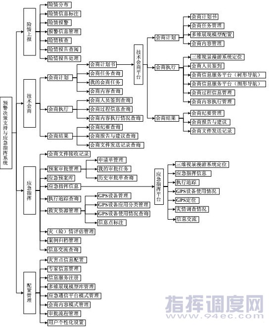地質(zhì)災(zāi)害預(yù)警決策支持與應(yīng)急指揮系統(tǒng)由險(xiǎn)情上報(bào)、技術(shù)會(huì)商、應(yīng)急指揮、配置管理四大模塊組成。 險(xiǎn)情上報(bào)模塊包含的功能有險(xiǎn)情分布、險(xiǎn)情信息標(biāo)注、險(xiǎn)情報(bào)警、報(bào)警信息管理、險(xiǎn)情核查、險(xiǎn)情報(bào)告、險(xiǎn)情報(bào)告處理。實(shí)現(xiàn)對(duì)發(fā)生的險(xiǎn)情進(jìn)行報(bào)警錄入,核查險(xiǎn)情的真實(shí)性,對(duì)核查后的險(xiǎn)情進(jìn)行處理及生成核查報(bào)告上報(bào)上級(jí)部門。顯示險(xiǎn)情的分布圖,并在分布圖中對(duì)險(xiǎn)情地點(diǎn)進(jìn)行標(biāo)注等針對(duì)險(xiǎn)情的管理操作。 技術(shù)會(huì)商模塊實(shí)現(xiàn)針對(duì)某次險(xiǎn)情發(fā)起會(huì)商,制定會(huì)商計(jì)劃。對(duì)會(huì)商計(jì)劃、會(huì)商執(zhí)行、會(huì)商結(jié)果進(jìn)行管理。提供輔助編制報(bào)告與建議功能,對(duì)專家會(huì)商全過程進(jìn)行追蹤、記錄、存儲(chǔ)、管理,并將會(huì)商中得出的建議與報(bào)告發(fā)送到相應(yīng)單位,為最終決策提供參考。 應(yīng)急指揮包括應(yīng)急指揮平臺(tái)、GPS系統(tǒng)接口、應(yīng)急預(yù)案庫管理以及應(yīng)急預(yù)案輔助編制、信息交流,接收會(huì)商文件并對(duì)災(zāi)情進(jìn)行應(yīng)急響應(yīng)、追蹤,對(duì)災(zāi)情進(jìn)行評(píng)估,最終形成案例歸檔。 配置管理模塊主要是針對(duì)需要配置的模塊進(jìn)行管理,主要包括災(zāi)害點(diǎn)信息配置、專家信息管理、信息服務(wù)注冊(cè)、多維展現(xiàn)模型庫管理、應(yīng)急通訊平臺(tái)模式管理、會(huì)商內(nèi)容模式管理、審批流程管理、用戶個(gè)性化設(shè)置。